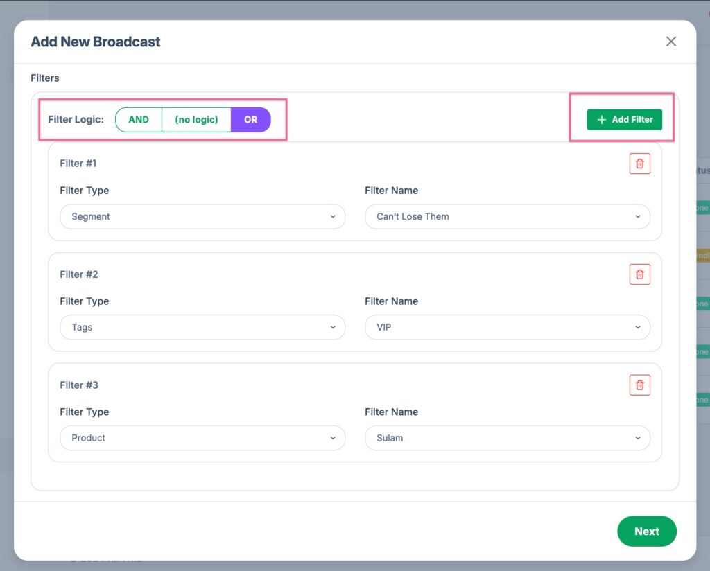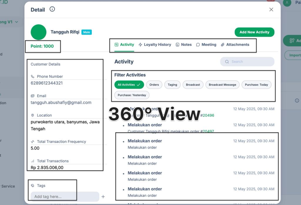 Lihat histori pembelian, histori broadcast, custom tags dan lainnya secara mendetail dan personalisasi